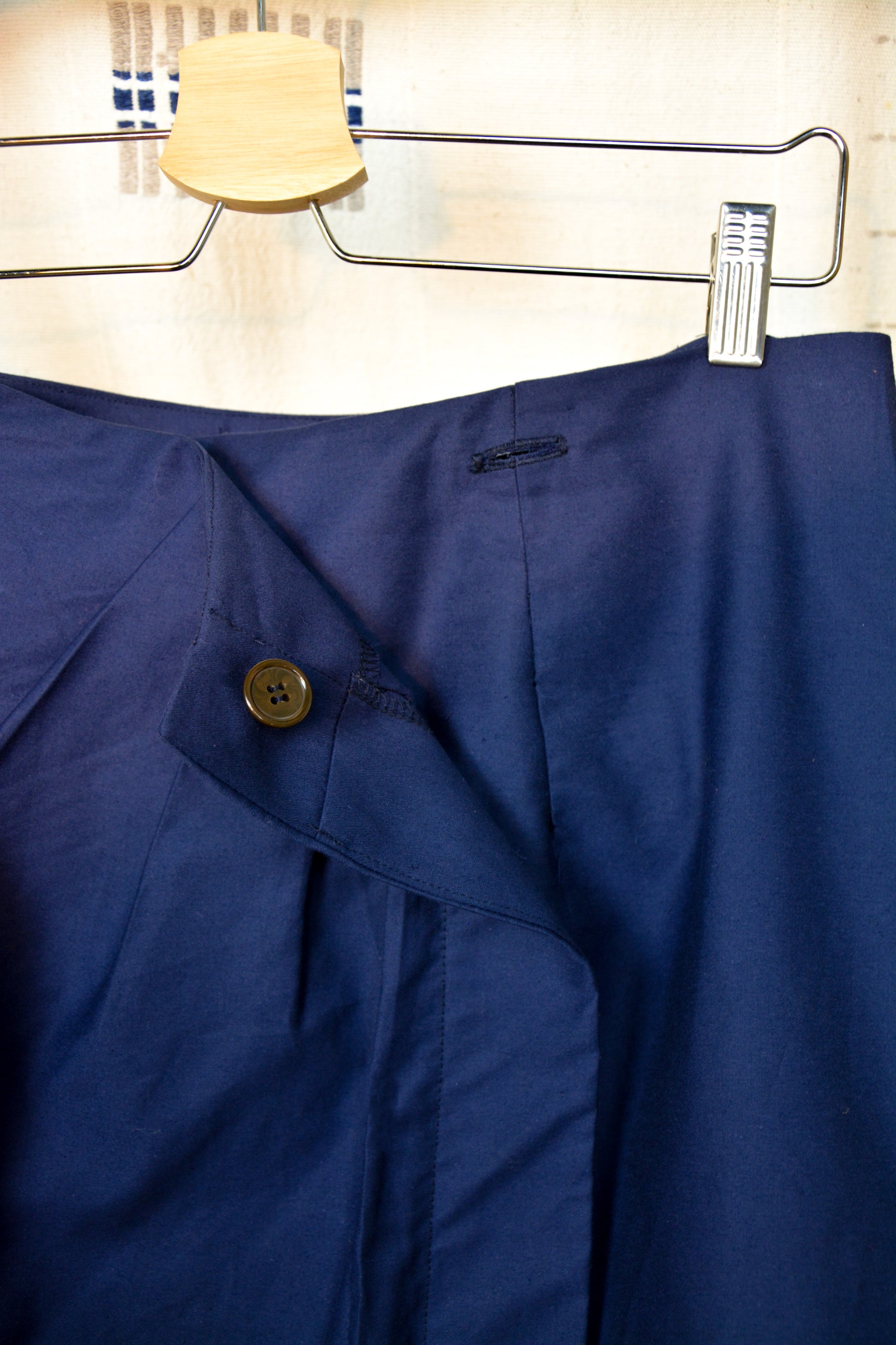 La jupe se ferme à la ceinture grâce à deux boutons cachés.